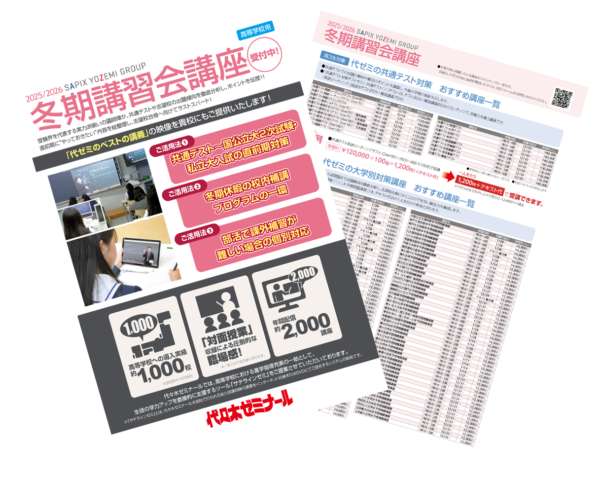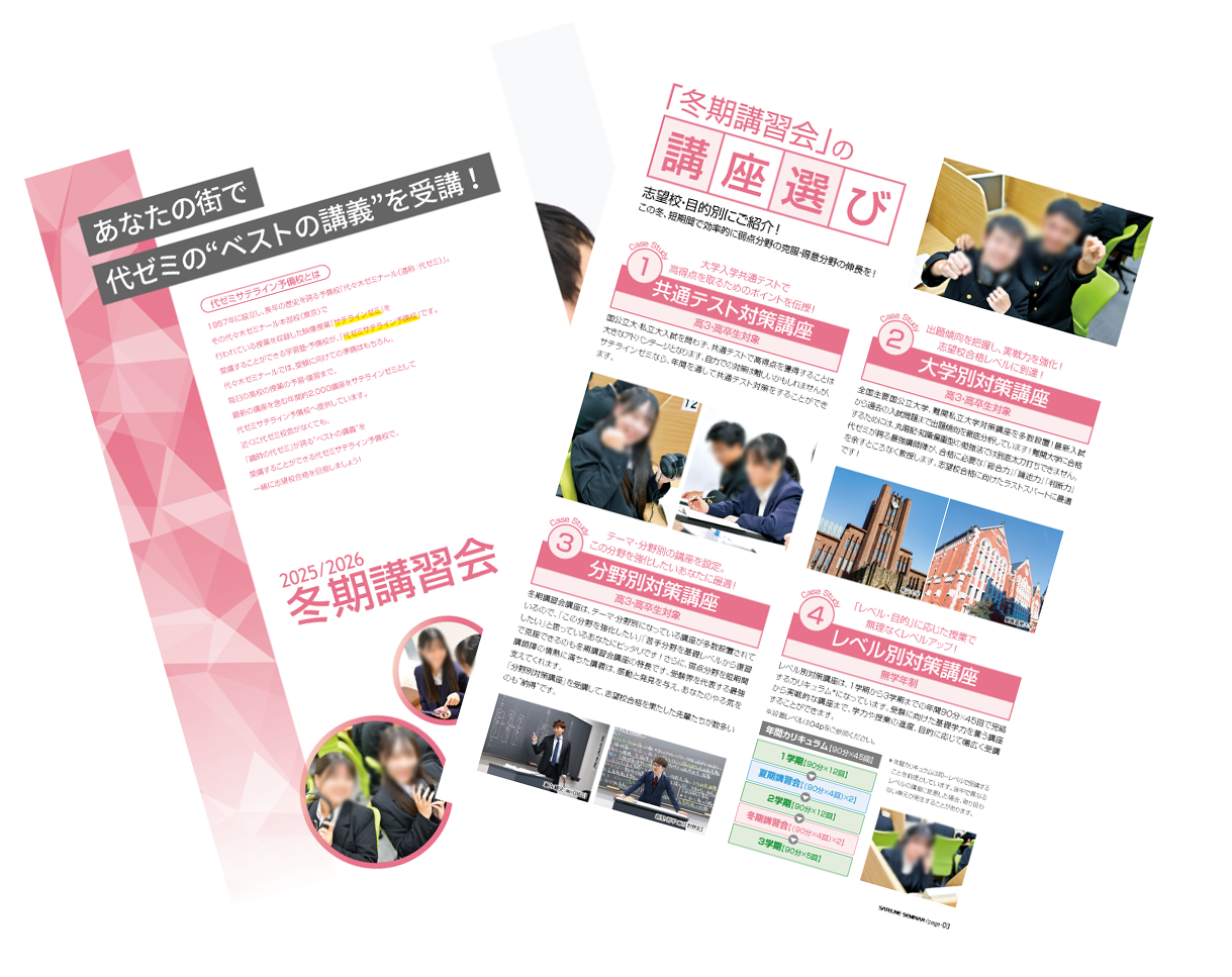 代々木ゼミナール様の「2025/2026冬期講習会講座」チラシを制作させていただきました。