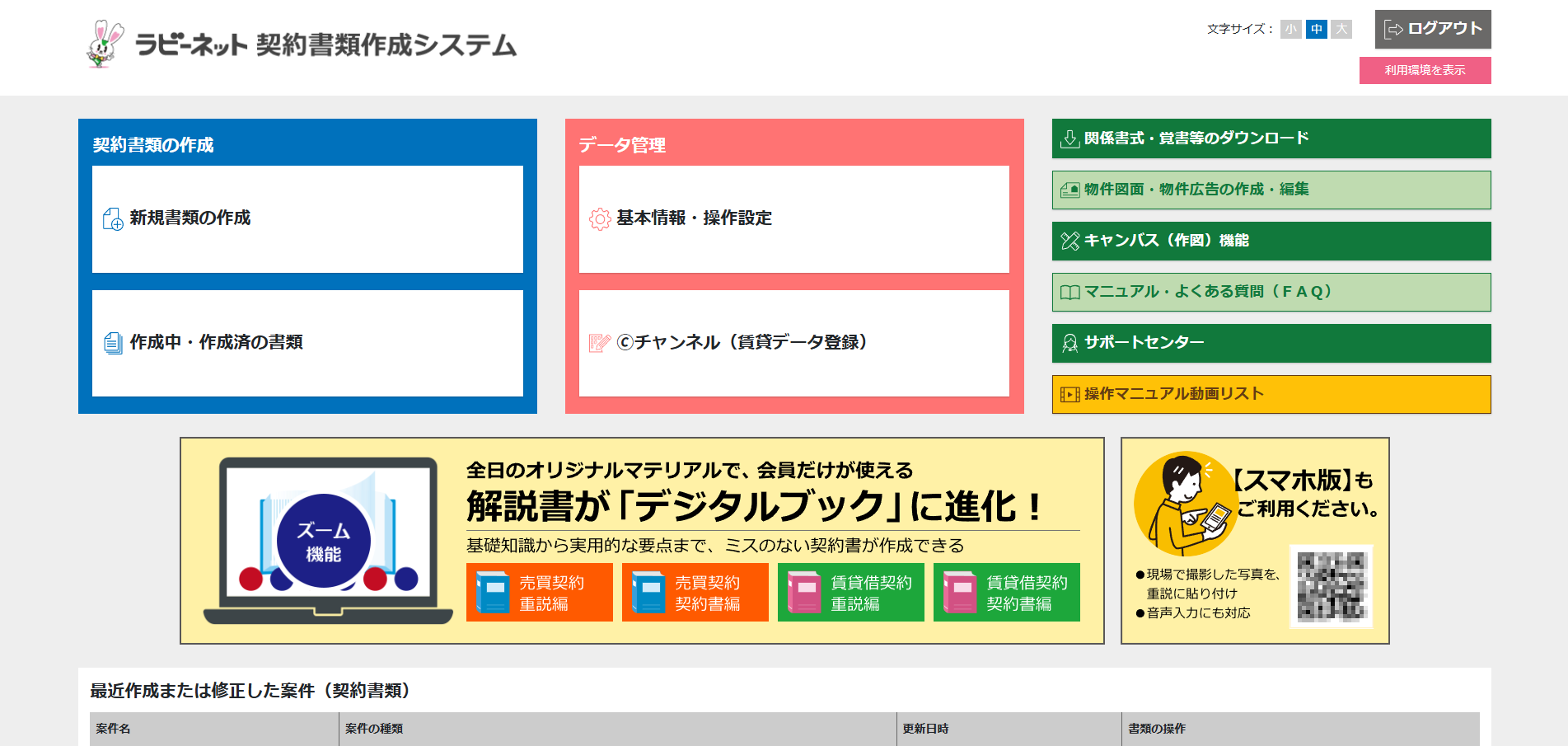 弊社が開発~保守管理をご委託いただいている契約書作成システム(ラビ契)は、公益社団法人全日本不動産協会の全国約40000社の会員様だけが利用可能な会員様支援ツールで、不動産取引のほぼ全ての契約の契約書を作成できるクラウドシステムです。