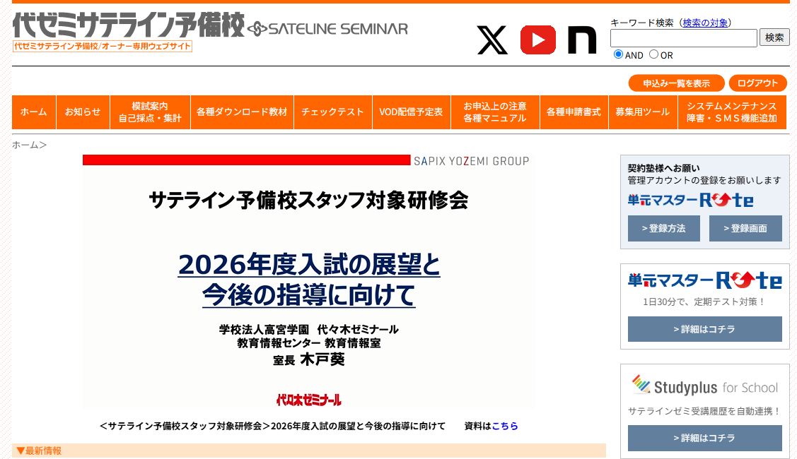 代々木ゼミナール様のオーナー(ご契約塾・予備校)様専用サイトに、新たに「動画コンテンツ」コーナーを設置いたしました。