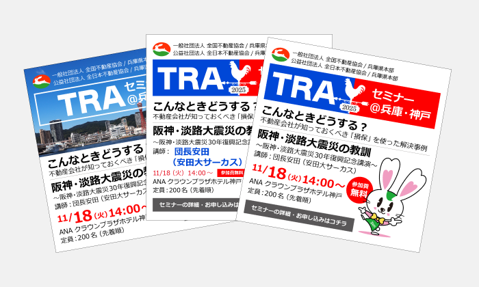 公益社団法人全日本不動産協会兵庫県本部様が主催される「TRAセミナー」の広告戦略として、Facebook・Instagram広告を制作し、配信設定および運用サポートいたしました。